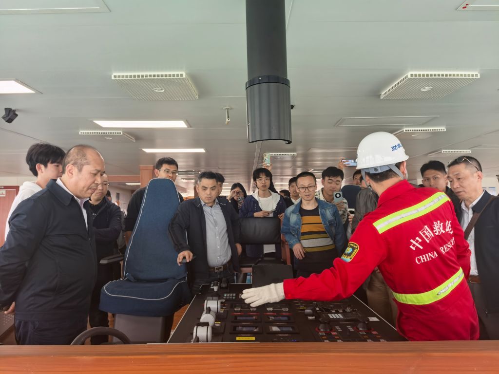 在基地工作人员的热情引导下,党员们首先登上了“南海救103”轮。工作人员详细介绍了救助船的性能特点、主要功能以及在过往救助行动中的英勇事迹,救助船上的各类救援装备、通信设备以及医疗设施等,也让党员们直观地认识到海上救助工作的科学性和专业性,更激发了党员们的爱国情怀和为人民服务的意识。