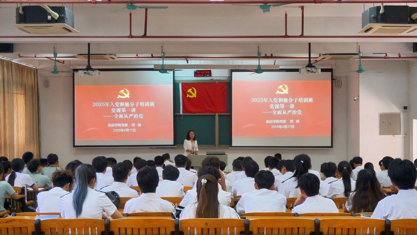 开班仪式结束后,周楠以《全面从严治党》为题讲授党课,开启培训班党课第一讲。她从习近平总书记在庆祝中国共产党成立100周年大会上的讲话引入,阐述了党在作风建设方面的历程与成就,并通过“为什么要全面从严治党?”“为什么党的十八大以来管党治党宽松软状况得到根本扭转?”“如何理解全面从严治党这场伟大自我革命?”三个问题深入探讨本次党课的主题,通过生动的案例、翔实的数据和深刻的分析,引导入党积极分子深刻认识全面从严治党是党永葆生机活力、走好新的赶考之路的必由之路。同学们认真聆听,不时的记录要点,现场学习氛围浓厚。