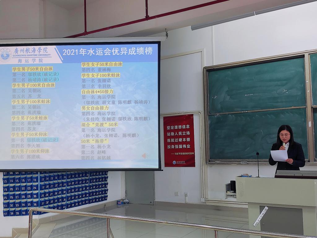 会上,林少栋老师充分肯定了公司所有参赛运动员在本次水运会中展现了海运学子良好的身体素质和积极向上的拼搏精神,赛出了水平、赛出了成绩,感谢所有运动员们的付出,也希望海运学子们能继续发扬体育精神,在接下来的校运会中再创辉煌。