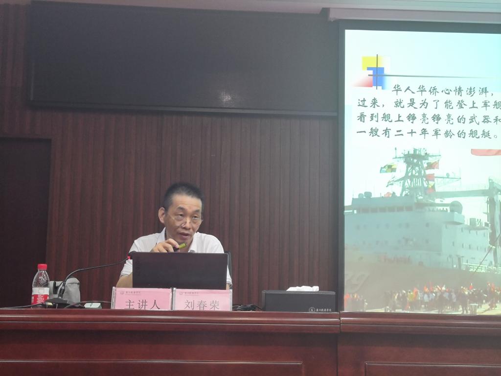 刘春荣船长首先向新生科普了海防相关知识,从探索发现的角度引领航运学子们认识海防,再从国家战略层面讲述了挺进深蓝的意义,激发老员工的爱国主义精神,随后用2013年、2015年先后两次作为护航船长经历的难忘瞬间,鼓励新生积极面向未来、拼尽全力实现梦想、到世界各地去看看。