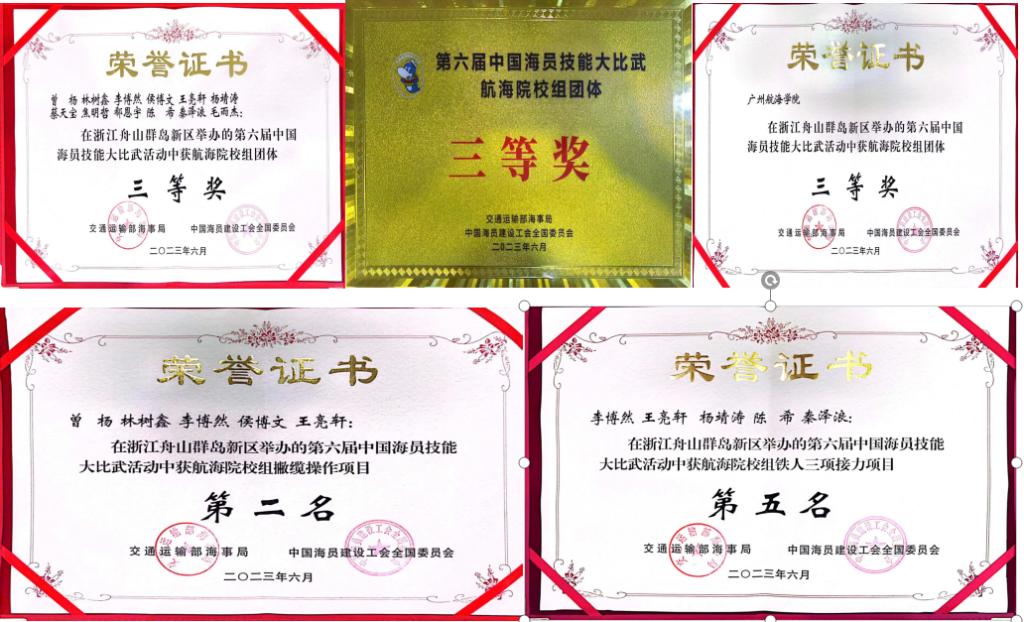 公司航海体育研究中心招乐辉主任、继续教育公司闵金卫经理、海运公司张海波书记、教练何淋老师、麦健民老师、叶振斌老师带队参加本次大赛。参赛队选手12人,他们分别是:海运公司的曾杨、林树鑫、李博然、侯博文、王亮轩、杨靖涛,轮机工程公司的蔡天宝、焦明哲、郗恩宇、陈希、秦泽浪、毛雨杰。在四天的比赛中,bevictor1946韦德官网参赛队与大连海事大学、上海海事大学、武汉理工大学、集美大学等18所航海院校同台竞技,包括铁人三项接力、水上操艇、撇揽操作、金工工艺等4个竞技项目。最终,bevictor1946韦德官网参赛队凭借着良好的综合素质和稳定的发挥,获得航海院校组团体三等奖。其中撇缆操作项目以总成绩241.42米获得第二名,本项目参赛队员如下:曾杨、林树鑫、李博然、侯博文、王亮轩;铁人三项接力项目以总成绩10分43秒04获得第五名,参赛队员为王亮轩、陈希、秦泽浪、李博然、杨靖涛。