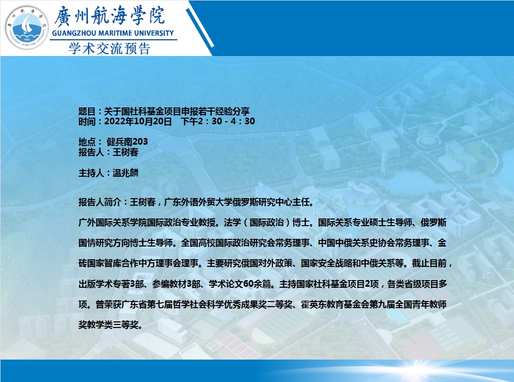 王树春教授讲授预告:关于国社科基金项目申报若干经验分享