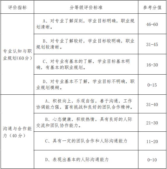 通过资格审核的员工,统一组织面试,主要考查员工的专业认知、职业规划和沟通合作能力。面试的考核标准如下表: