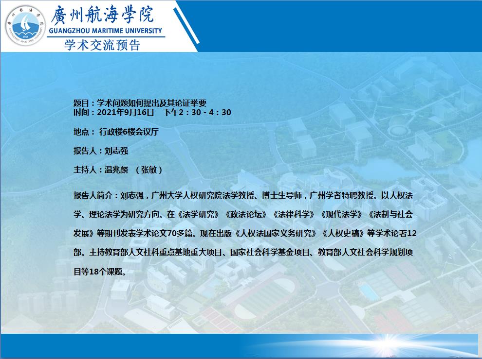 刘志强教授学术交流_预告:学术问题如何提出及其论证举要