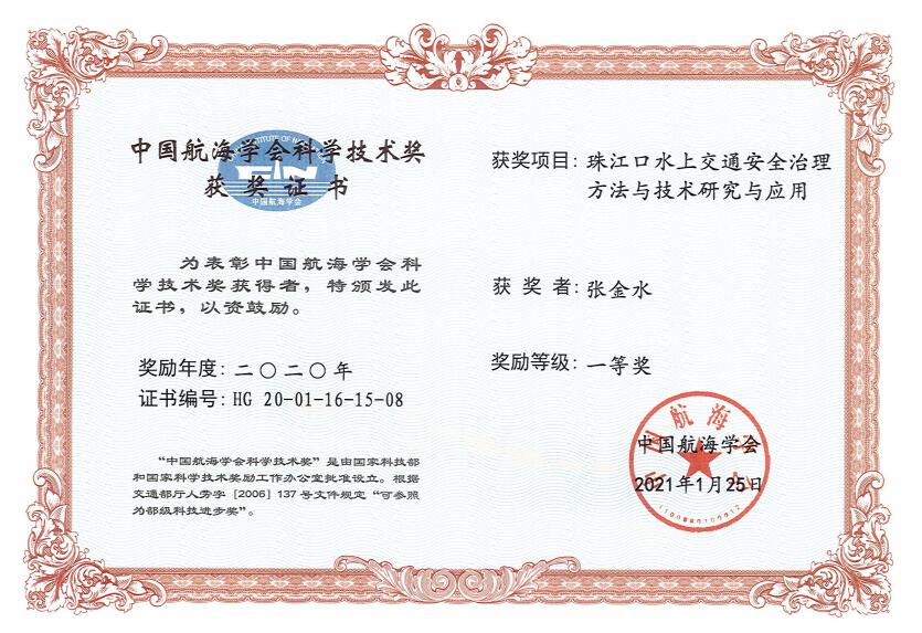张金水老师荣获“中国航海学会科学技术奖获得者”一等奖