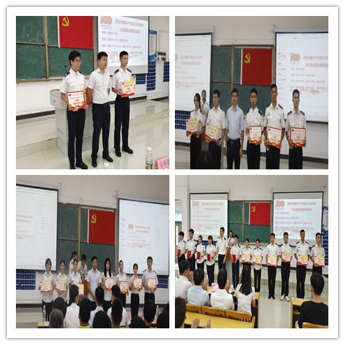 与会来宾及师生一同观看两个大赛的视频回放,展示了海运学子青春心向党的豪情壮志与半军事管理良好的精神风貌。接着,员工党员代表曾晓玲同学对两次比赛开展情况进行总结,重温海运学子用嘹亮歌声赓续红色血脉,传承红色基因。随后,林少栋老师宣读了《关于对“列队上课唱红歌”比赛获奖区队进行表彰的决定》、《关于对“庆祝中国共产党成立100周年大合唱比赛”获奖区队进行表彰的决定》两个文件。李大伟副总经理、马冬青船长、李海兵高级主管等应邀为获奖代表颁发奖金及奖杯。
