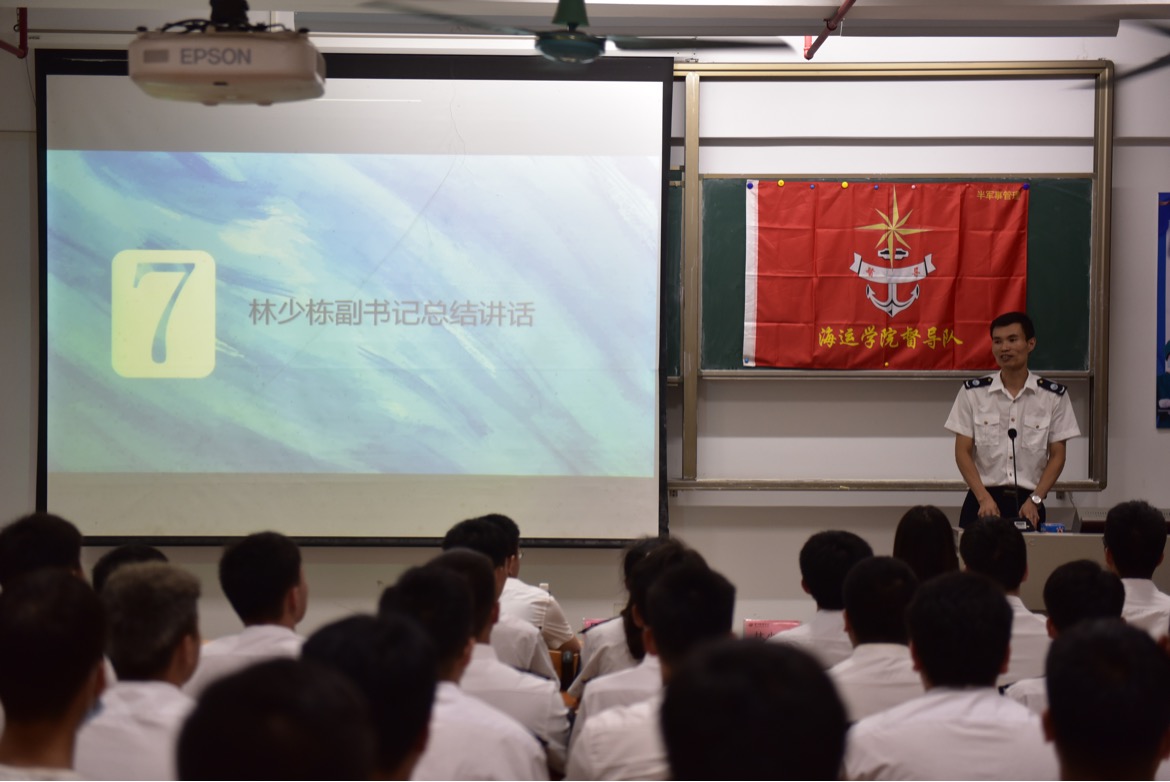 最后,林少栋老师作了总结发言,林老师认为督导队上一学年的工作卓有成效,对队员们日复一日的辛苦工作看在眼里、记在心中。一年来严格执行各项半军事管理规定,督促同学们做好一日生活制度实施,出色的筹划组织一年一度的半军事管理会操,为海运公司半军事管理工作做出很大贡献,希望新一届督导队干部继续发扬优良作风,推进海运公司半军事管理工作更上新台阶。