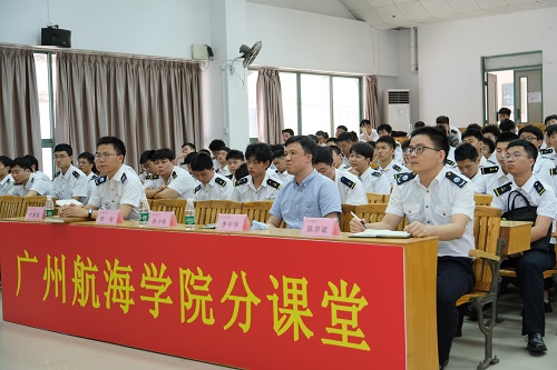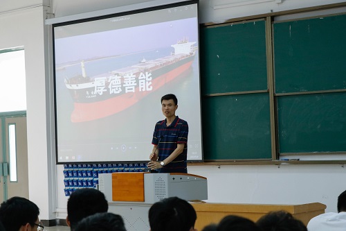 紧接着,李中华经理为同学们播放了广东粤电船舶管理公司的视频,让同学们对广东粤电船舶管理公司有了进一步的了解。李经理表示,航海技术专业的就业方向并非如大家所想的狭窄,只要勤于学习、踏实肯干,就有属于自己在航海领域的一席之地。李经理也对同学寄予希望,在航运事业日益强盛的中国、国际综合影响力日益增强的中国,作为一名船长、一名航海人、一名航海技术的员工,就应该有责任有担当,也应该拥有时代的梦想。