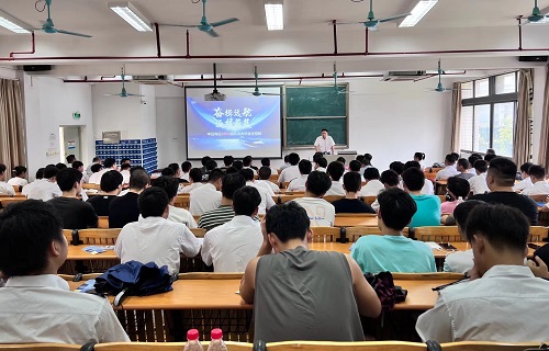 随后,任职于中远海运船员管理有限公司的员工代表赵伟滨讲述了入职公司的面试过程和海上工作体验,勉励师弟师妹们要珍惜公司提供的学习机会,不断提高理论和实践相结合的能力。最后,广州分公司副总经理汪家元介绍了中远海运的招录条件、薪酬福利、培养模式等,期待毕业生们可以加入中远海运船员管理有限公司。