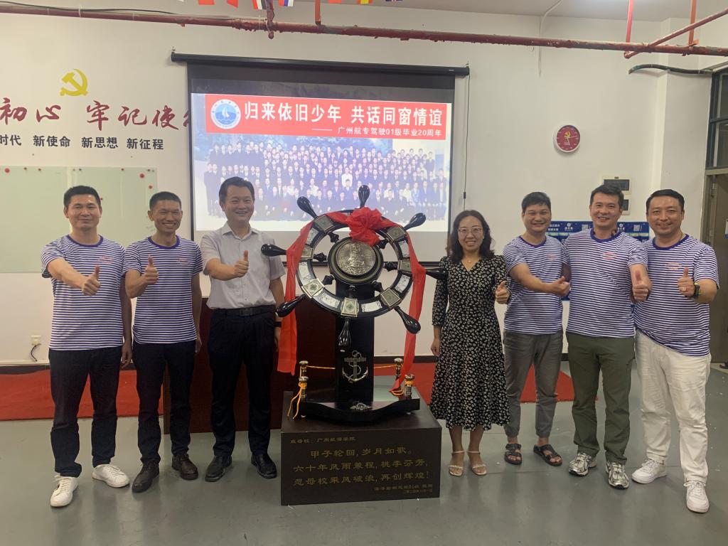 座谈会后举行了捐赠仪式。为感谢母校的培养和对母校发展的美好祝愿,2004届海洋船舶驾驶专业员工向公司赠送了一件特殊的礼物——领航舵。员工们用这件寓意深远的礼物祝愿母校在新的历史机遇中把稳方向,乘风破浪,向着星辰大海跨步迈进,同时也寄托着员工对母校引领他们在人生旅途中扬帆起航的深情感激。