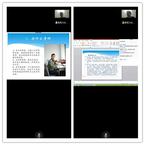 在交流互动环节中,两位师兄就要不要跨专业考研、资料信息收集、研究生就业现状等大家普遍关心的问题,与师弟师妹进行了一一交流。