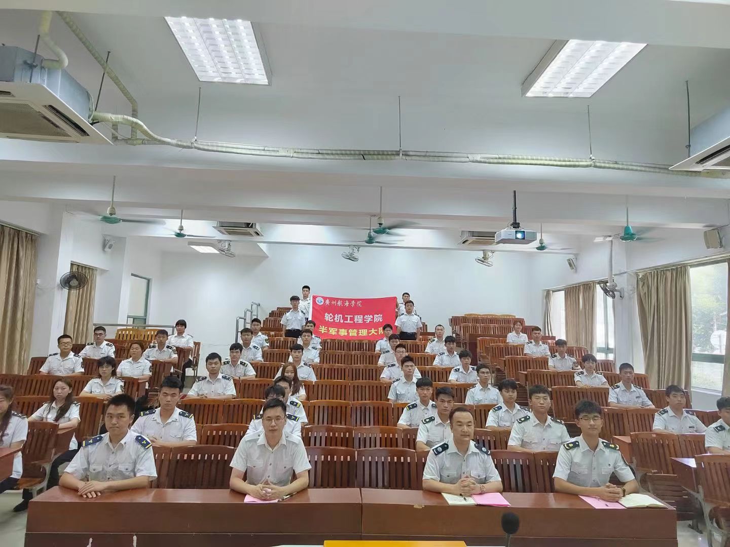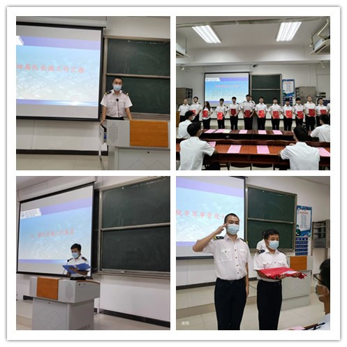 (轮机工程公司供稿)6月2日下午,轮机工程公司于教学楼107室举行了半军事管理教·督导队换届交接仪式。轮机工程公司分团委书记陈茂嘉老师,教·督导队指导老师赵垒,校国旗队、校纠察队、院分团委、院员工会、公司党支部、各中队骨干代表及教·督导队全体成员参加了本次仪式。