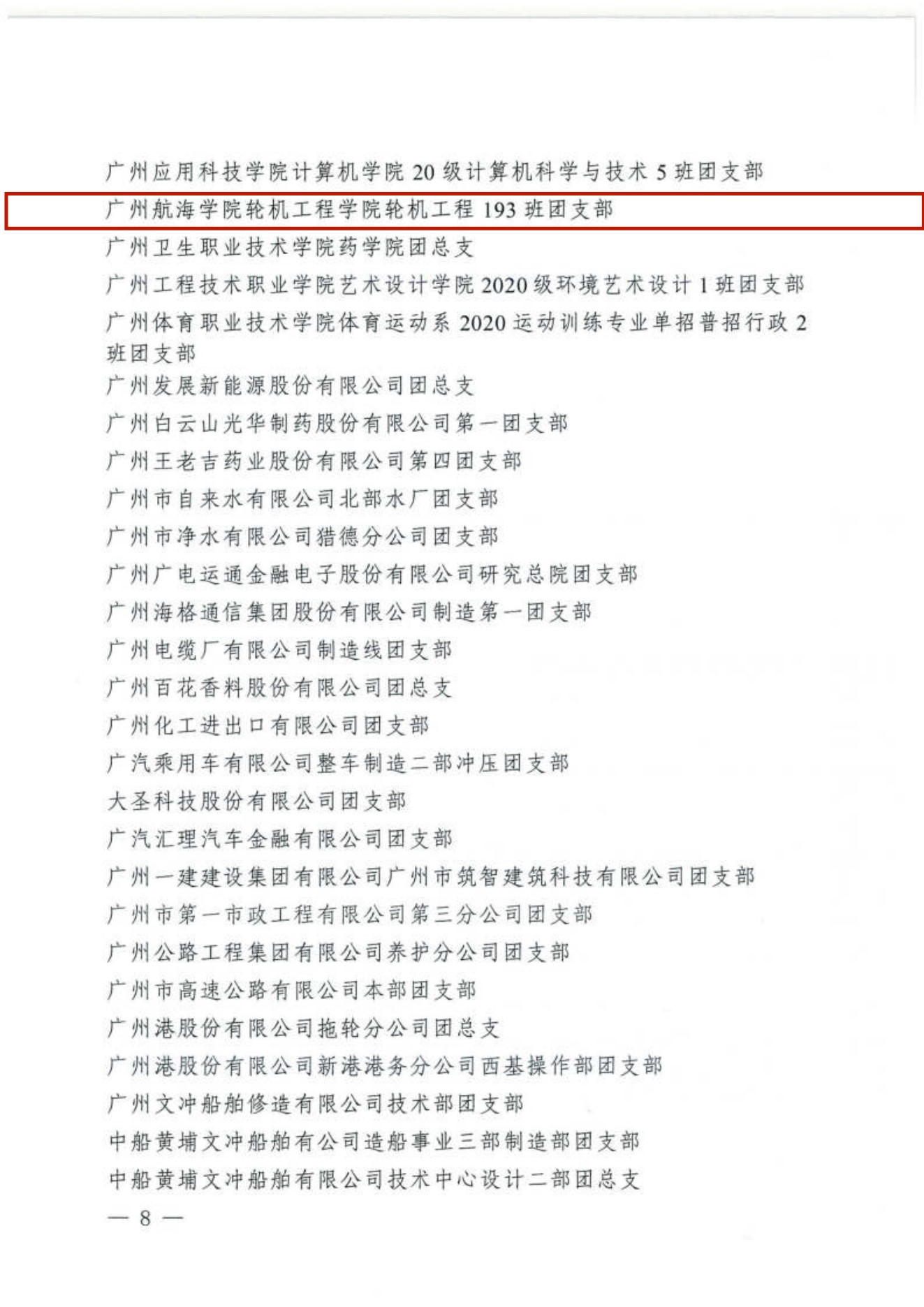 (轮机工程公司供稿)近日,共青团广州市委员会发布《共青团广州市委员会关于表扬2021-2022年度广州市五四红旗团委、五四红旗团支部、优秀共青团员、优秀共青团干部的通报(团穗字〔2022〕11号)》,公司轮机工程193班团支部荣获广州市“五四红旗团支部”荣誉称号。