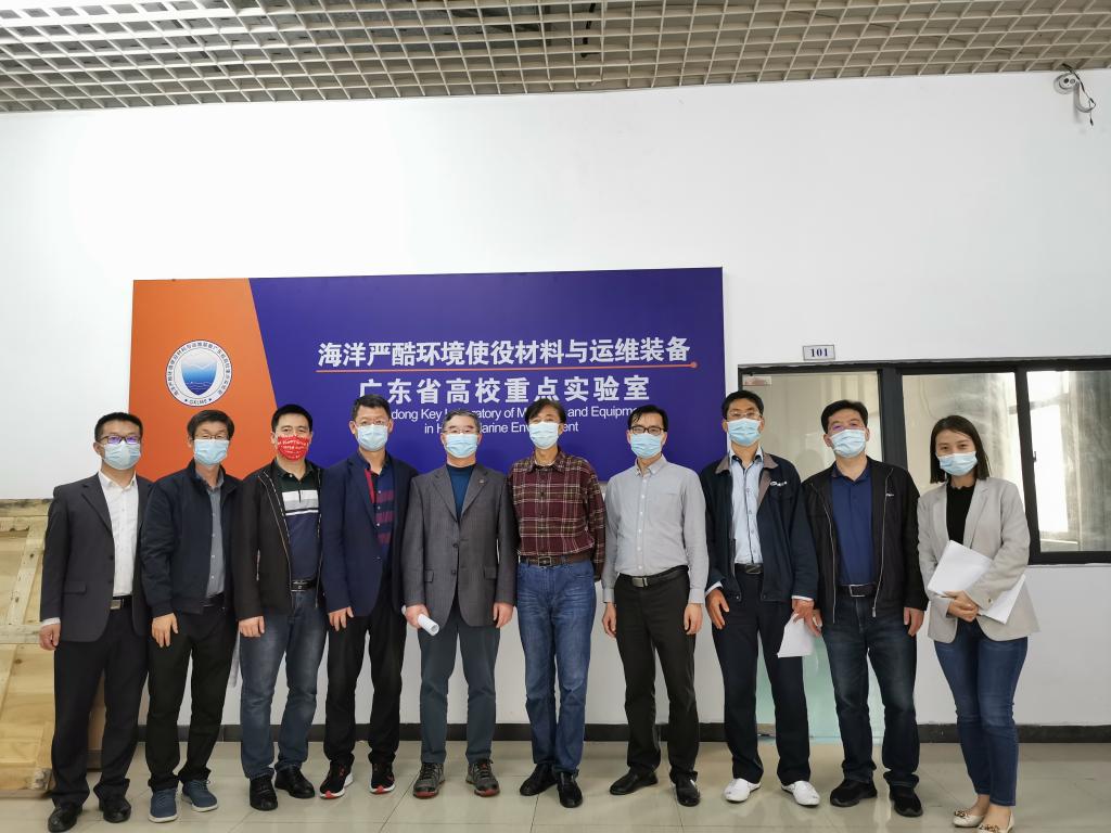 本次验收工作专家组成员有:中山大学陈建教授,广东腐蚀科学与技术创新研究院杜昊研究员,广东工业大学曹晓国教授,中船黄埔文冲船舶有限公司闫德俊教授级高工;及公司代表:资产与装备处陈建平处长,轮机工程公司滕宪斌经理,《海洋严酷环境使役材料与运维装备》广东省高校重点实验室主任尹衍升教授、李建新教授,科研处曹辉教授,资产与装备处资产管理科刘勇科长和甘恬静老师等。