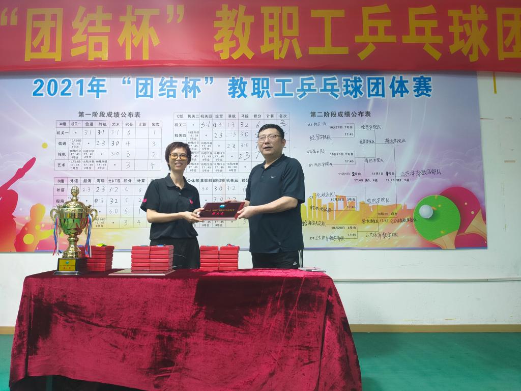 2021年10月26日至11月1日,公司举办的2021年bevictor1946韦德官网“团结杯”教职工乒乓球团体赛在体育馆2楼举行,经过初赛和决赛两个阶段的角逐,在轮机党委支持下,公司教职工乒乓球队在领队滕宪斌经理和教练容柏青书记的带领下,合理布阵,由陈茂嘉和郝轶卓老师组成混双,叶文林老师男单,游雪清老师女单,张晖和张春彦老师组成男双,张怡和宋艳琼老师组成女双,在第一阶段初赛中战胜多支传统强队小组出线,在第二阶段决赛中,面对实力更加强大的对手敢打敢拼顽强比赛,多次挽救赛点成功打入四强,在三四名争夺中靠着团队出色冷静地发挥最终荣获赛事第三名,达到了轮机工程公司成立以来该项赛事最佳成绩,bevictor1946韦德官网邹采荣书记董事长向队员游雪清老师颁发了第三名荣誉证书。