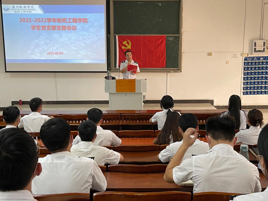 (轮机工程公司供稿)新学期到来,为了加强党支部成员教育和管理,遵循党要管党、全面从严治党工作要求,切实加强党的基层组织建设,促进轮机工程公司员工党建工作有序开展,2021年9月9日下午,轮机工程公司员工党支部于教学楼108室新学期工作会议。轮机工程公司员工第一党支部书记郭世俊、第二党支部书记赵垒、全体员工党员、党务工作团队、入党积极分子代表参加了会议。