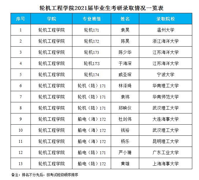 (轮机工程公司供稿)近日,公司陆续收到2021届本科毕业生被各大高校录取为硕士研究生的喜讯。据统计,公司2021届本科毕业生共349人,报考研究生总人数为33人,其中达到教育部公布《2021年全国硕士研究生招生考试考生进入复试的初试成绩基本要求》(国家分数线)的15人,成功被录取的13人,取得了过线录取率达86.67%的好成绩。录取高校有华南理工大学、华南师范大学、武汉理工大学、大连海事大学、宁波大学、温州大学、广东工业大学、昆明理工大学、上海海事大学、江苏海洋大学、浙江海洋大学等。