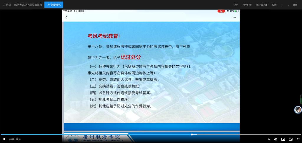 (轮机工程公司供稿)为加强学风建设,严肃考风考纪,按照公司党委“我为群众办实事”的工作部署,6月17--6月21日,轮机工程公司员工党支部在各中队召开诚信考试教育后,开展了“严肃考风考纪,建设优良学风”签名活动。考虑疫情因素,本次活动由各班组织实施。
