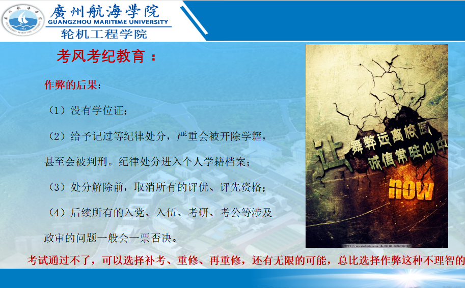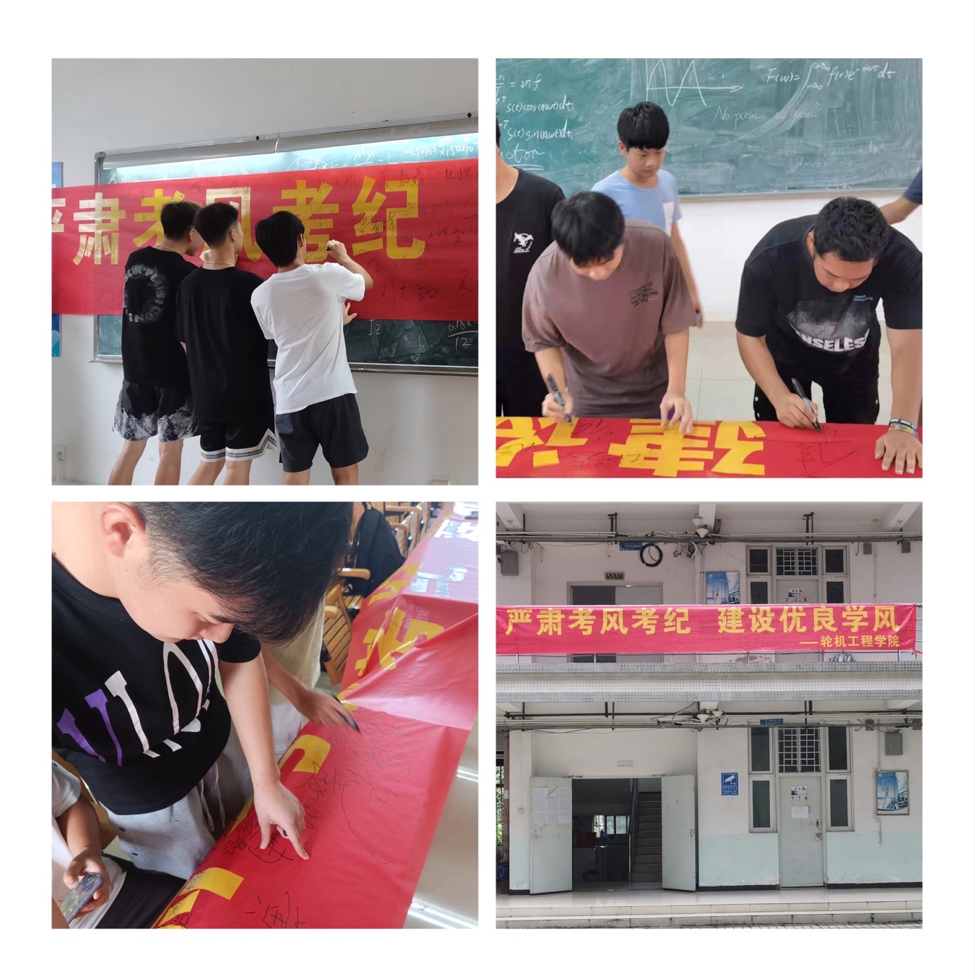 在诚信考试专题教育中,公司各中队长结合员工手册、作弊案例就哪些是作弊行为、作弊后果、作弊长远影响、作弊员工的内心分析、如何备考等方面给各年级同学进行了全面深入的讲解。因此,在各班组织诚信考试签名活动中,同学们表现的慎重又很自信,在“严肃考风考纪,建设优良学风”横幅上认真签下自己的名字,签完后一些同学还要驻足一会,以表达自己的决心和信心。签名活动结束后,这条横幅张贴在轮机工程公司南三栋员工宿舍楼内,将长久的警醒员工们抓紧学习,营造良好的考试氛围。