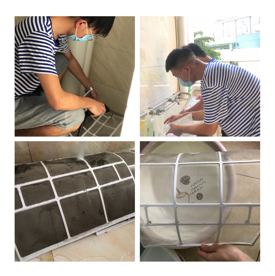 为了组织好本次活动,公司员工党支部组建了清洗空调工作小组,6月17日下午,蔡建邦老师、郭世俊老师给员工进行了专业培训。6月18日中午、下午,在赵垒、赵双双老师带领下,工作小组同学深入北区、南区女生宿舍清洗了空调。6月21--22日,在郭世俊老师带领下,工作小组同学深入轮机楼清洗了办公室、实验室空调。活动过程中,同学们相互配合,充分体现了合作精神,让志愿活动更加顺利。