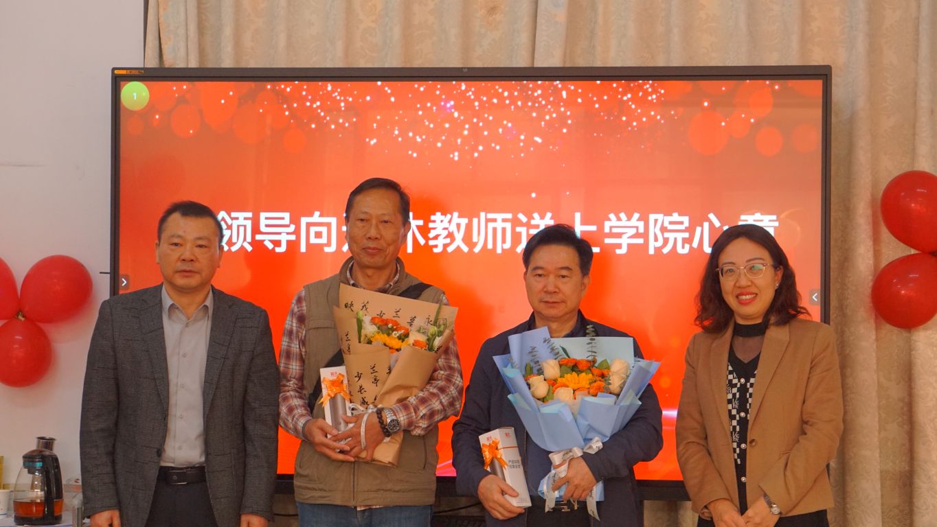 12月19日下午,为深入贯彻党中央、教育部关于礼敬教师,弘扬尊师风尚的有关精神,进一步营造尊师重教良好氛围,增强教师的职业荣誉感和归属感,激励退休教职工适应“新角色”、扛起“新担当”、再展“新作为”、谱写“新篇章”。同时为在职教师和退休教师之间搭建交流和分享的平台,传承教育家精神,伟德国际1946bv官网举办了2024年度教师荣退仪式暨欢送会,为5位今年退休的教师送上组织的关心关怀,退休教师江剑文、李正亮、冯德阶到现场接受大家的祝福,廖铁勇、肖乐明老师因事未能到场。欢送会由公司党政办主任尹冬梅主持,全体院领导、退休教师所在教研室负责人和教师代表参加仪式。
