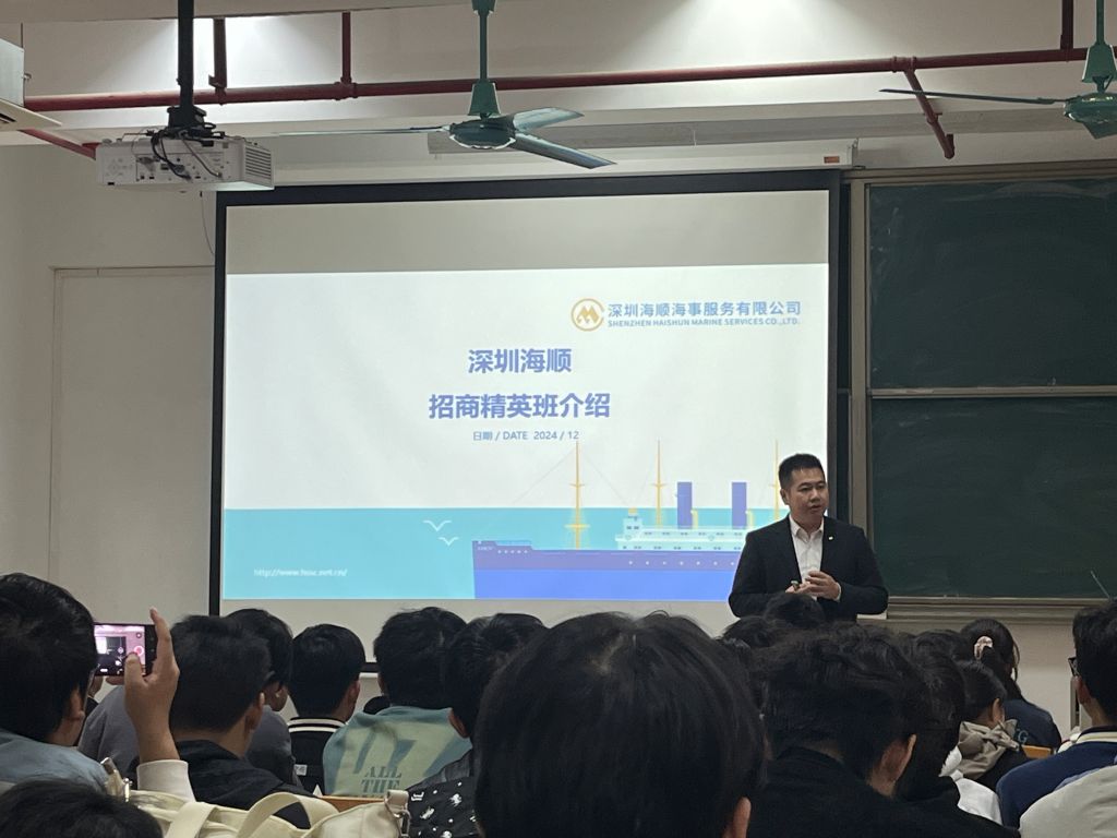 (伟德国际1946bv官网 供稿)根据校企合作订单班协议的安排,2024年12月26日,招商局能源运输股份有限公司受邀到bevictor1946韦德官网健兵北301进行了招商精英班宣讲会。深圳海顺海事培训中心经理杨荣辉、广州海顺船务有限公司总经理助理谢元辉、深圳海顺海事服务有限公司船员招聘部副主管孙浩峻,公司党委书记周楠、辅导员何淋、钟聪仕以及160多位2024级有意向的员工参加此次宣讲会并进行了校企合作交流。