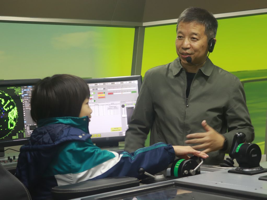在船舶航行环境模拟器体验中,小同学们仿佛登陆了船舶驾驶台,开始亲身体验“开船”的乐趣。通过模拟实践操作和参观船舶内设施,让小同学们不仅深化了对航运业的理解,也感受到了船舶特有的魅力。沉浸式体验激发了他们对航运行业的兴趣,为未来投身该领域奠定了良好的基础。
