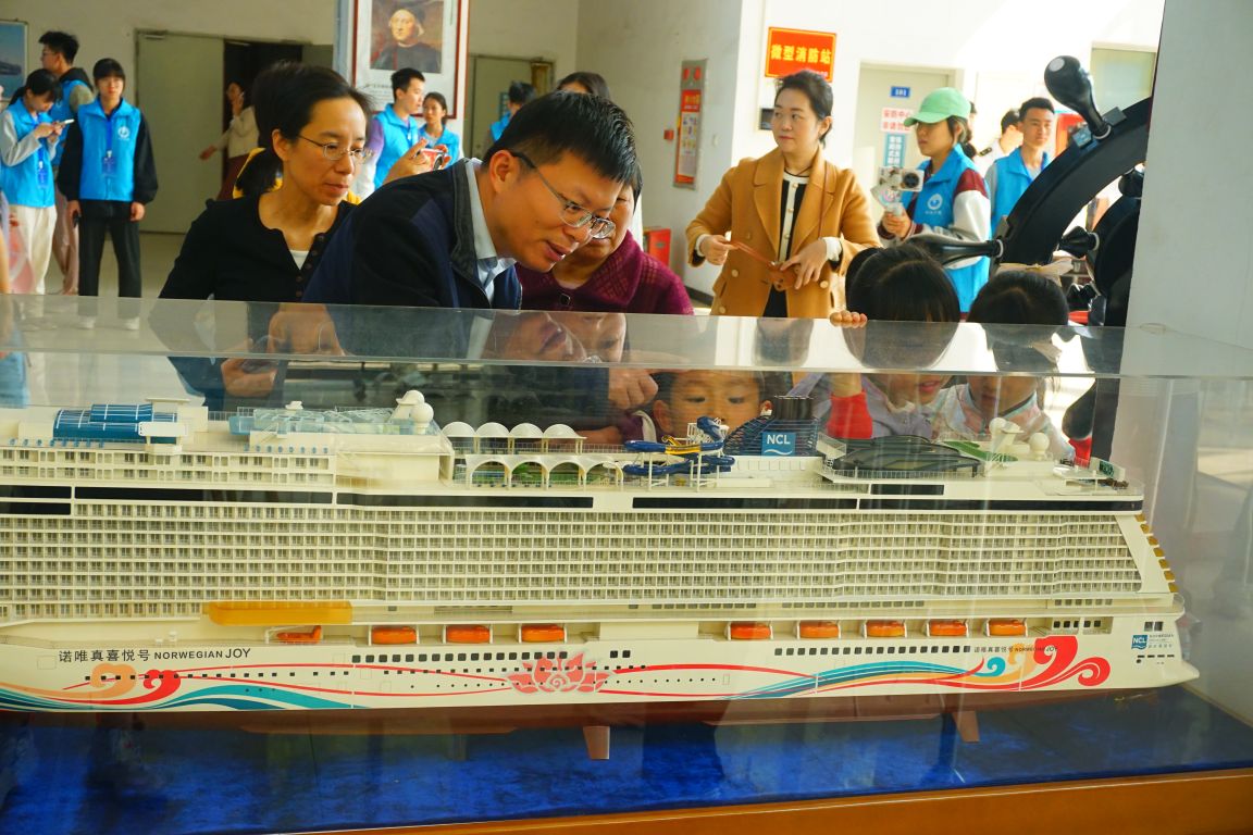 (员工和家长观看船模)