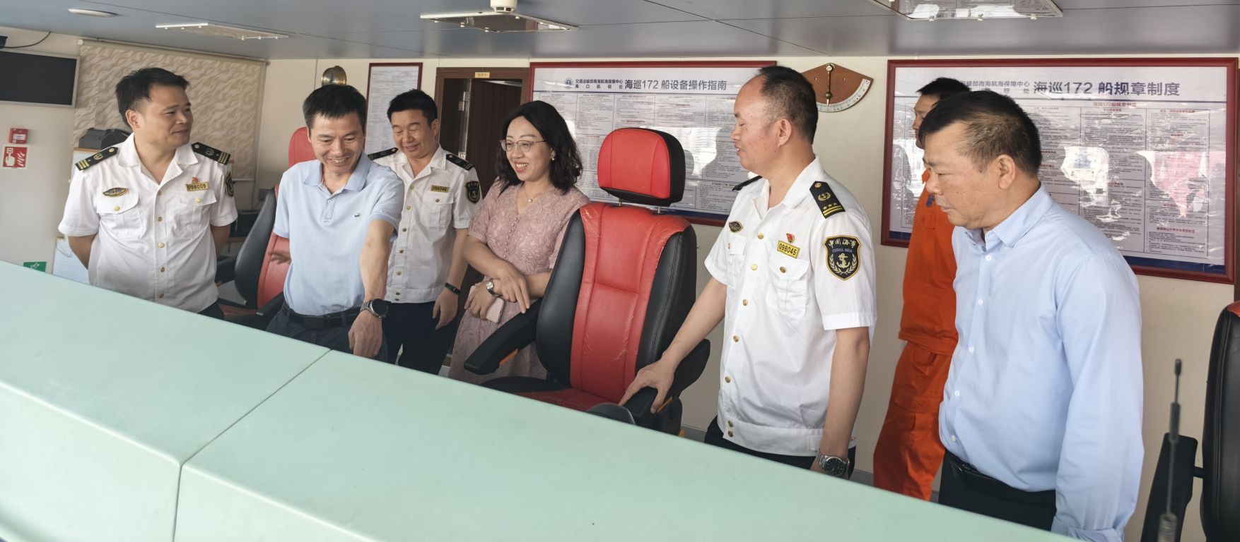 在海口航标处调研时,周楠一行参观了海口航标保养基地和海巡172船,了解航标产品逐步国产化的情况和走向国际市场的趋势。双方就航标信息化、智能化、多功能等方面进行了深入探讨,交流了人才招聘与女性船员培养、保护等相关配套政策的意见建议。