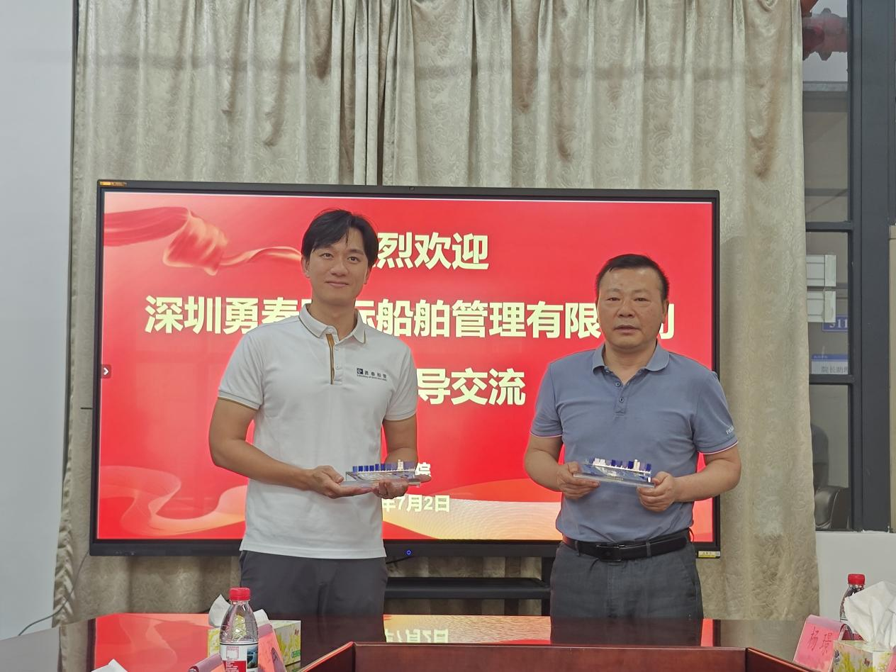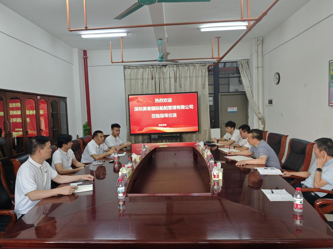 7月2日,深圳勇春国际船舶管理有限公司总经理张谢嵩一行到访伟德国际1946bv官网。伟德国际1946bv官网经理魏安、副经理杨其观等在B7航海楼514会议室热情接待。